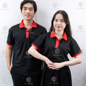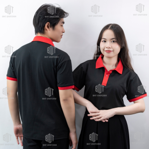 Đồng phục áo thun có cổ màu đen phối cổ đỏ